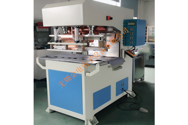 设备原理:由高频电子管自激震荡器瞬间产生电磁波电场,被加工的PVC、TPU塑料分子在上、下电极之间高速相互摩擦生热使塑料分子发生急性化溶解,加上一定的压力就可以达到熔接的目的。